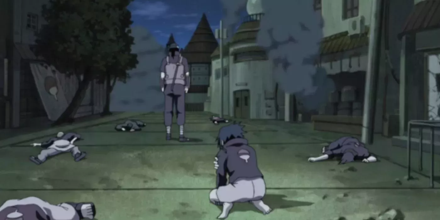 A pesar de su afecto por la comunidad, Itachi se convierte en un agente doble y opta por masacrar a todos. Cuando su hermano pequeño Sasuke está ausente, Itachi hace su jugada, y el clan Uchiha queda destruido.