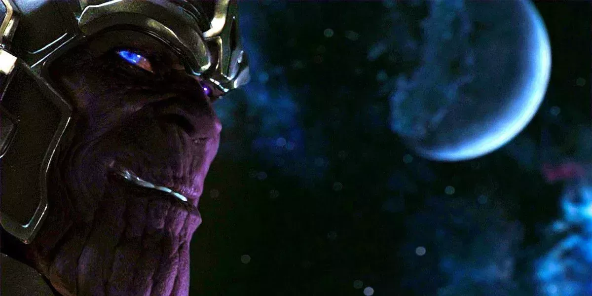La primera escena post-créditos de Los Vengadores marca la primera vez que los fans ven a Thanos en el MCU. Ya se había hecho referencia al Titán Loco, pero esta escena sirve como su primera aparición. Sonríe después de que El Otro anuncie la derrota de Loki a manos de los Vengadores.