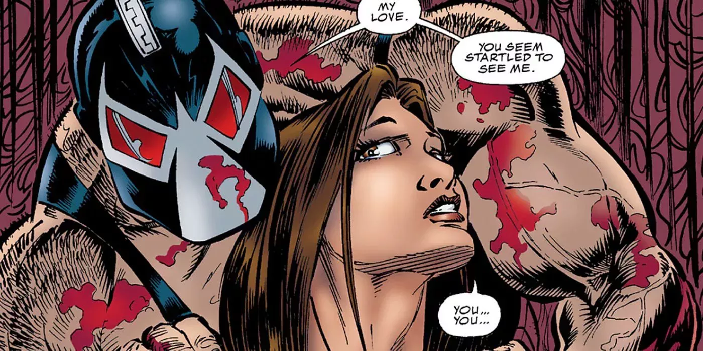 Bane ha tenido unas cuantas encarnaciones, incluida una que utiliza uno de los peores artilugios de Batman (un compuesto de esteroides conocido como Veneno) para aumentar su fuerza. Otra versión de la película The Dark Knight Rises era simplemente un hombre muy grande y fuerte. Aunque ambas versiones de Bane encontraron el amor en Talia, ella traicionó su confianza y se separaron como enemigos en los cómics.