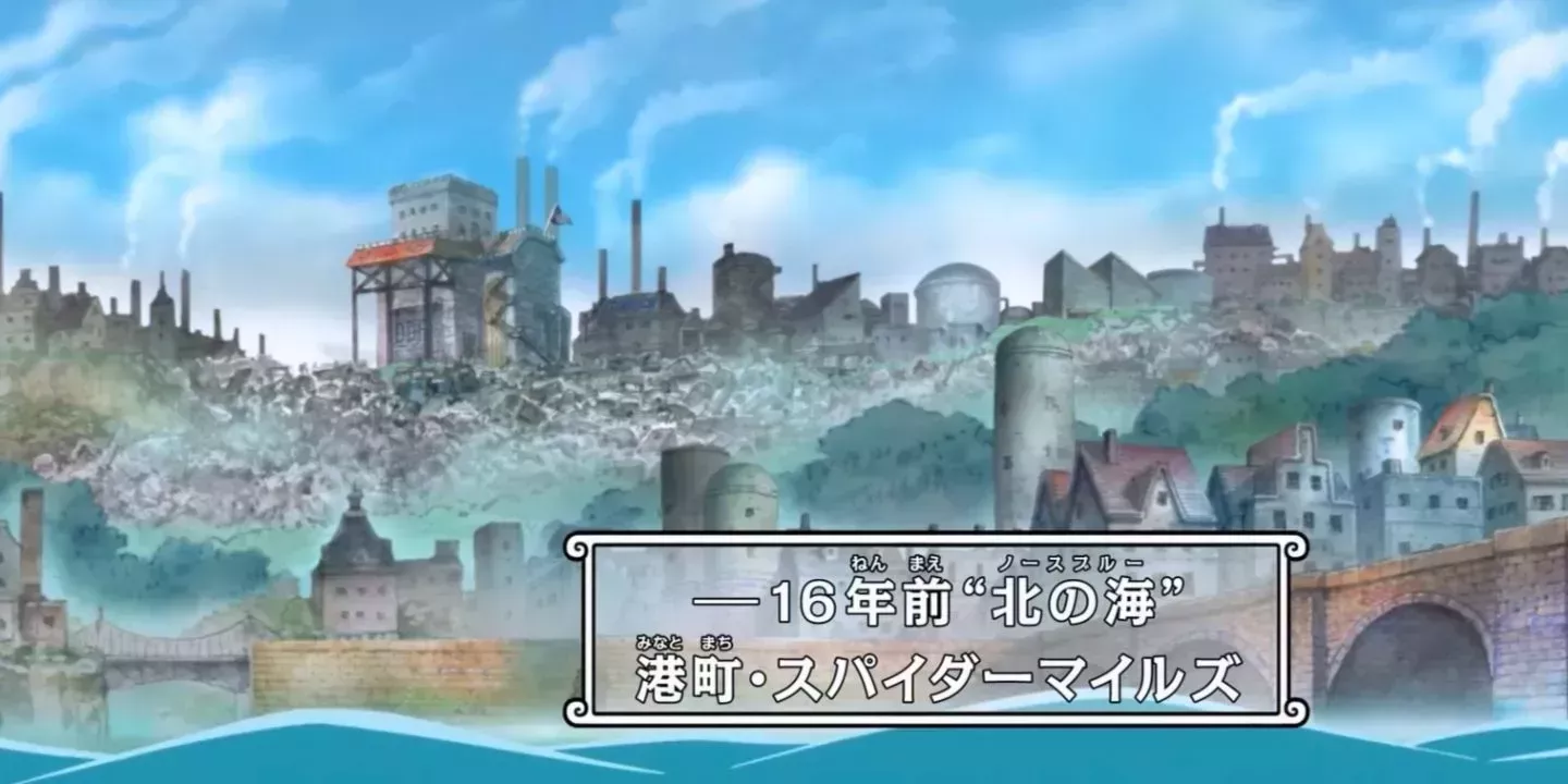 One Piece presenta con frecuencia una gran variedad de entornos, pero rara vez la serie visita islas caracterizadas por una intensa industrialización. A pesar de la relativa falta de escenarios industrializados, lugares como Spider Miles, que se caracteriza por su paisaje plagado de fábricas, marcan algunas de las pocas variaciones de esta norma.