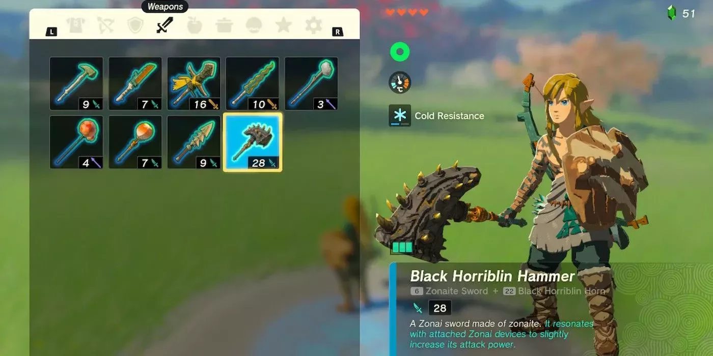 Una de las cosas que más echan de menos los jugadores de Breath of the Wild es la comida contundente, especialmente el Durán Contundente, que brilla por su ausencia. Esta fruta permitÃa a los usuarios obtener hasta 20 corazones, lo que resultaba extremadamente útil en batalla.