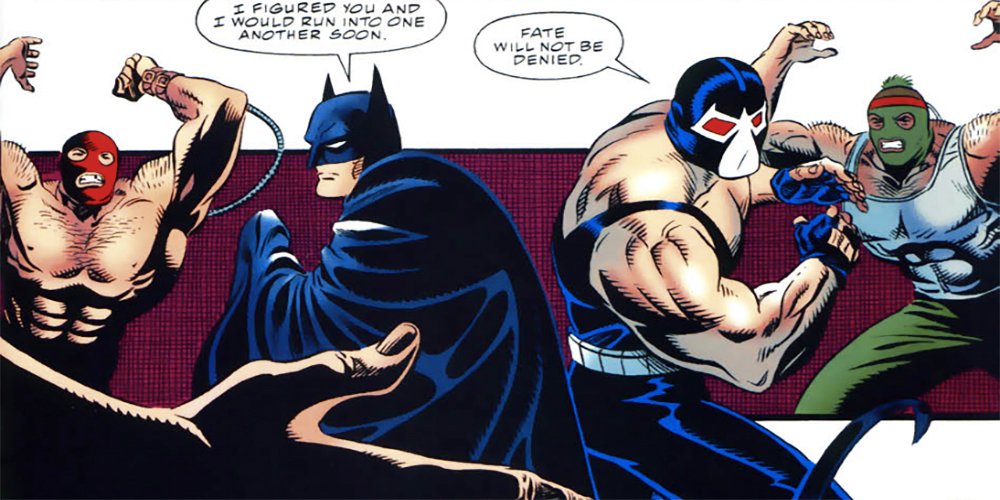 Además, en No Man's Land, Batman convence a Bane de que rompa su acuerdo con Lex Luthor, ya que había estado actuando como su ejecutor en una Ciudad Gótica devastada por un terremoto. Sin embargo, a pesar de sus asociaciones ocasionales, Bane y Batman siguen siendo enemigos mortales, de lo que el reciente arco de la Ciudad de Bane puede dar fe.