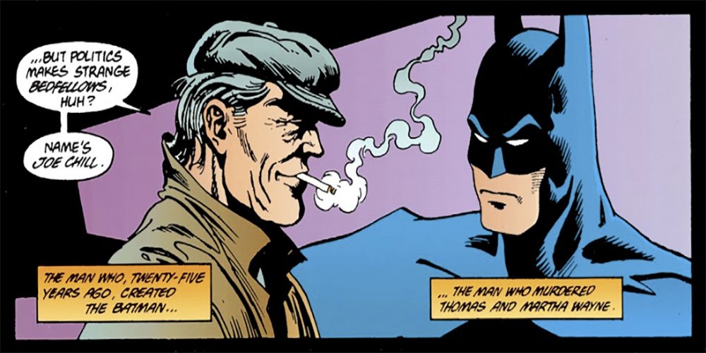 Ese hombre es Joe Chill, el hombre que mató a los padres de Bruce Wayne. La lucha personal que Bruce siente aquí es palpable: por un lado, desea asesinar a Chill para vengar a sus padres y, por otro, quiere cumplir su promesa de librar a Ciudad Gótica del crimen sin rebajarse al mismo nivel que los criminales (o The Reaper, para el caso). Con una sorprendente conclusión del dilema, este equipo es definitivamente el más difícil en el que Batman ha tenido que participar.