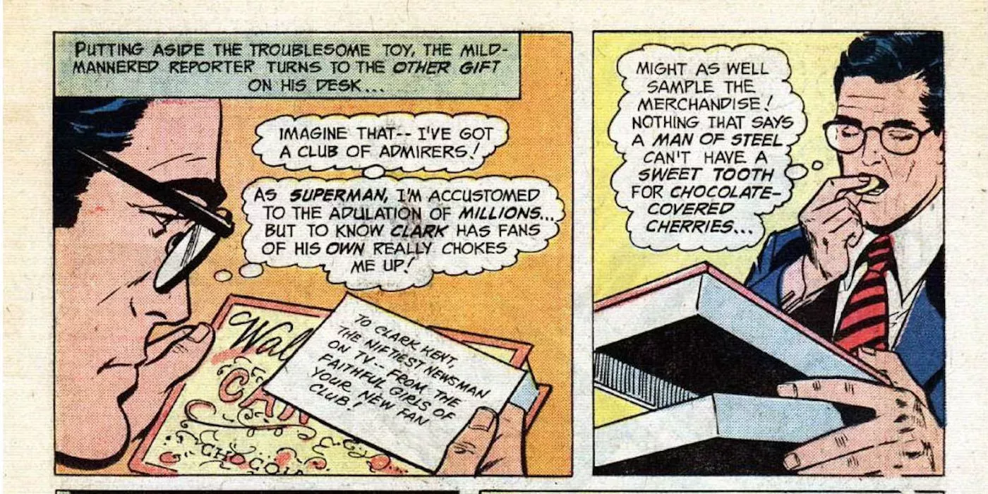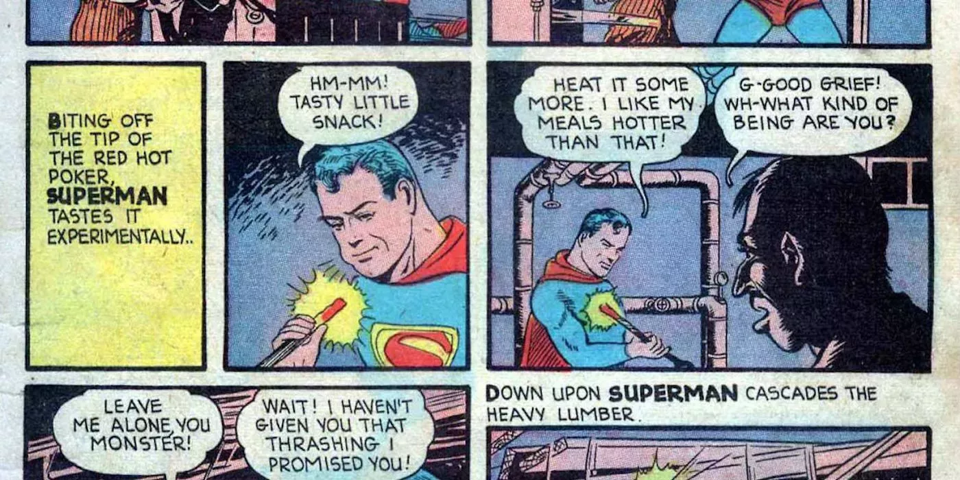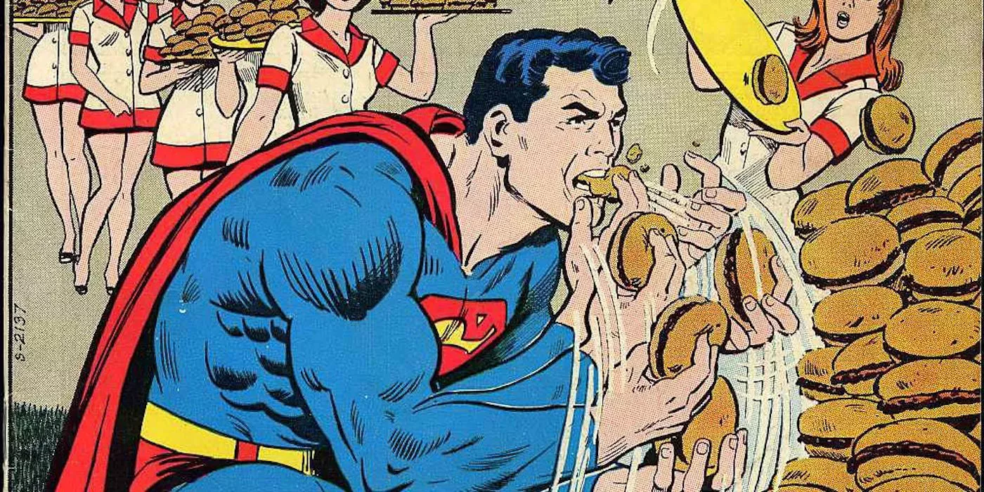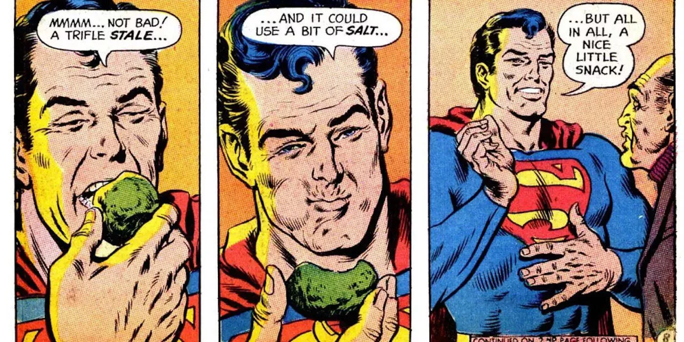 Superman posee media docena de superpoderes y un estómago increíblemente resistente. Aunque el Hombre de Acero puede disparar láseres desde sus ojos y saltar edificios altos de un solo salto, también puede, aparentemente, ingerir casi cualquier cosa que desee. Aunque en muchas historias de Superman se insinúa que su capacidad para obtener energía del sol hace innecesaria la alimentación, el Hombre de Acero come más que su cuota de comida allá donde va.