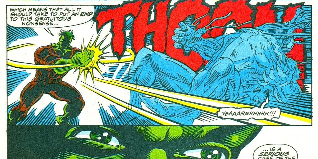 El cómic encuentra a Hulk luchando contra Venom como resultado de un malentendido sobre las intenciones de Venom de salvar a las personas atrapadas por un terremoto. Hulk rápidamente derrota a Venom noqueándolo con un aplauso, que debido a la súper fuerza de Hulk crea un ruido lo suficientemente fuerte como para noquear al simbionte. La amenaza de los aplausos de Hulk es, sin embargo, una debilidad que Venom supera dados los eventos posteriores del golpe único.