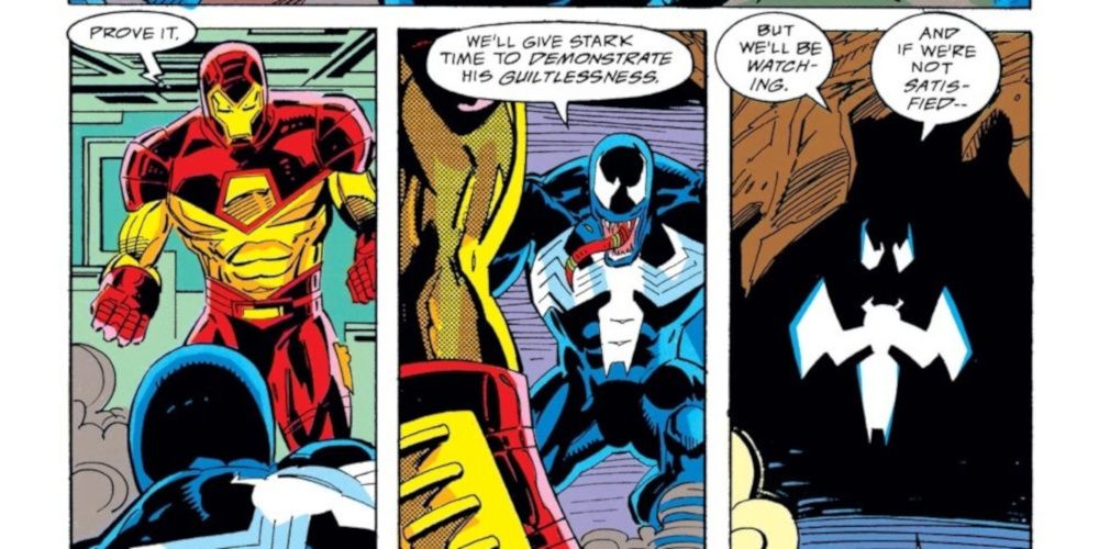 Esta humillante derrota de Venom es el resultado de que ocurrió en un interesante período de la historia de Venom, entre su tregua con el Spider-Man y el comienzo de su fase antihéroe. Venom decide matar a Tony Stark porque veía a Industrias Stark como una compañía que se aprovecha de los inocentes. Este esfuerzo lo llevaría a luchar contra Iron Man en Iron Man no.302.