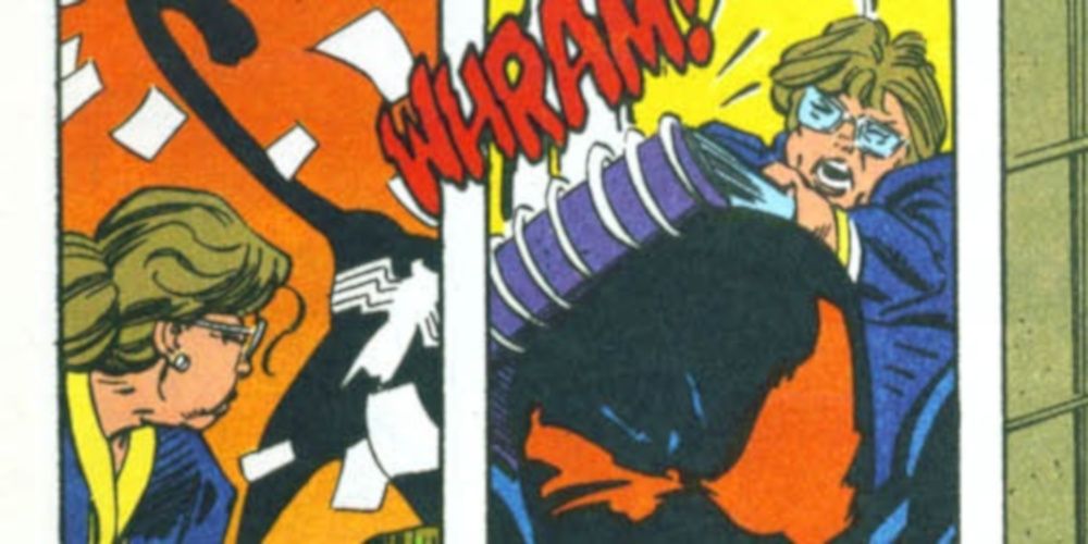 La derrota más vergonzosa para Venom es en realidad de un pequeño cameo en la edición 29 de Sensational She-Hulk. A pesar de que sólo tiene un par de páginas, le da a Venom su más vergonzosa derrota hasta ahora cuando es golpeado en la cabeza por una anciana con una carpeta.