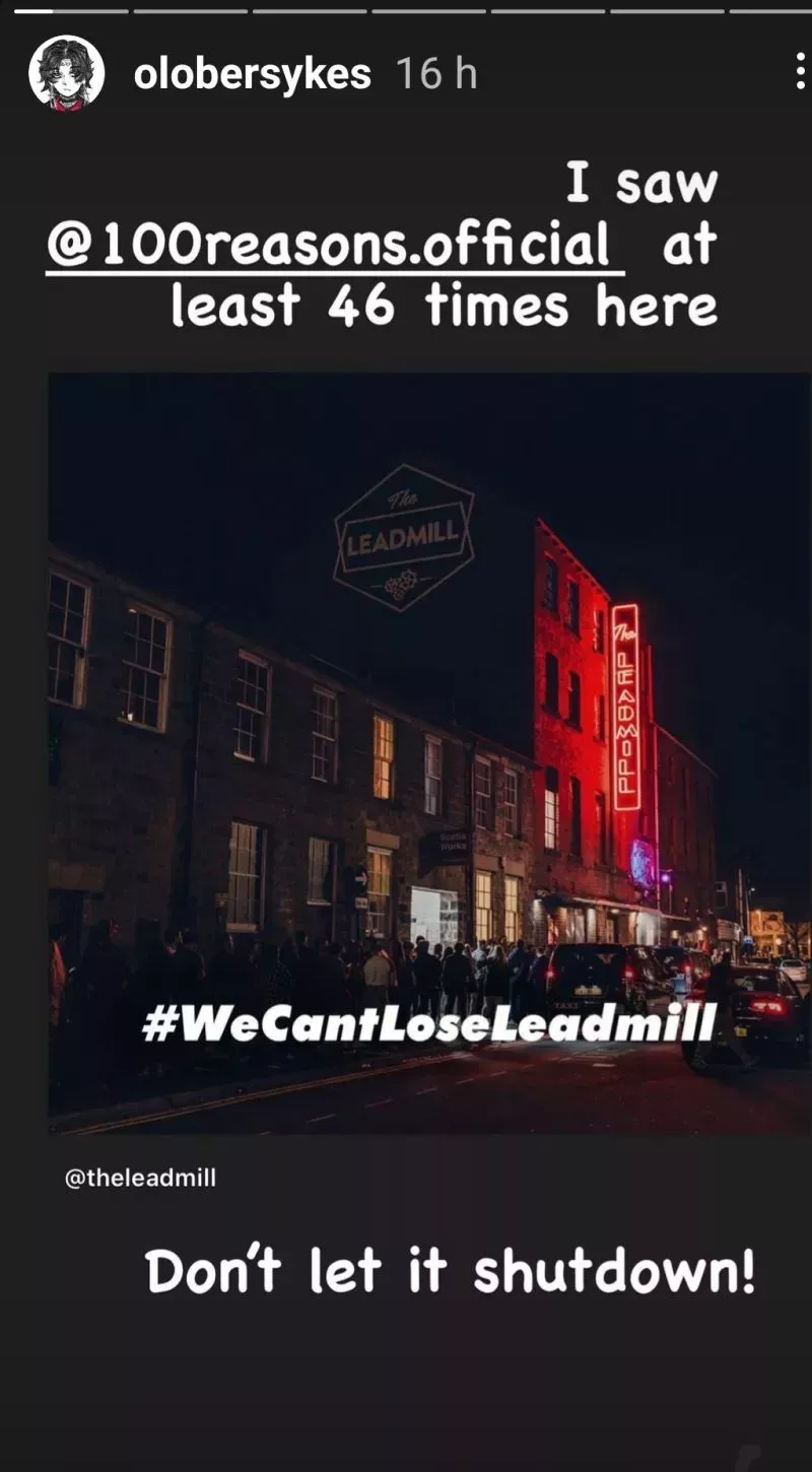 El frontman contó a sus seguidores cómo vio a los británicos de culto Hundred Reasons "al menos 46 veces" en el local, antes de añadir: "¡Que no se apague!"