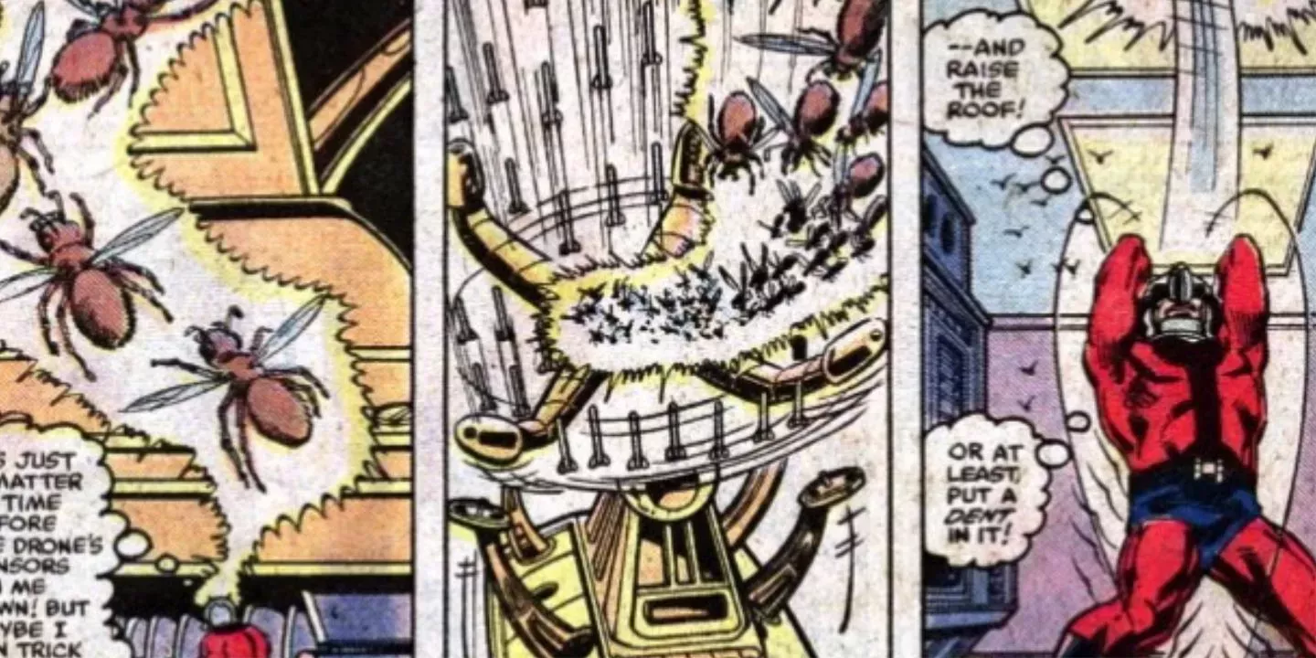 Gracias a la habilidad de Scott para controlar a las hormigas, no siempre tiene que ensuciarse las manos. Por eso, se le ocurre una forma creativa de derrotar a uno de los tiradores más hábiles de Marvel, Taskmaster, cuando ambos se enfrentan en el interior de un almacén.