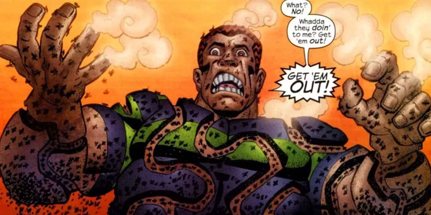 Como Sandman está hecho de tierra, Hank piensa que la mejor forma de derrotarlo es ordenar a su ejército de hormigas que lo conviertan en un hormiguero. Las hormigas siguen sus instrucciones y construyen numerosos pasillos y habitaciones en el interior del villano, derrotándolo en el proceso.