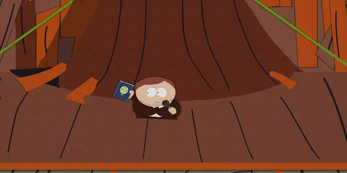 Stan y Kenny empezaron a reÃrse y a repetir esta cita. Sin embargo, hicieron demasiado ruido e interrumpieron al Sr. Mackey. Como resultado, el Padre Maxi les gritó y les hizo temer que si no alababan a Dios o confesaban sus pecados, serÃan enviados al infierno.