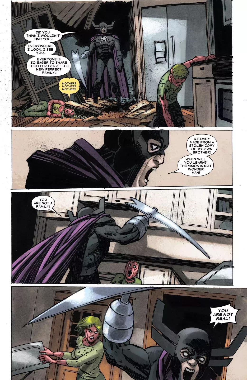 En esta serie, la Visión se ha creado una familia suburbana mientras trabaja como Vengador. Virginia, la esposa, y Viv y Vin, los dos hijos. Se están adaptando a sus nuevas vidas, con los adolescentes yendo al instituto, cuando de repente, sus vidas aparentemente ordinarias dejan de serlo, ya que la Parca les ataca violentamente durante su cena (sin que la Visión esté presente)...