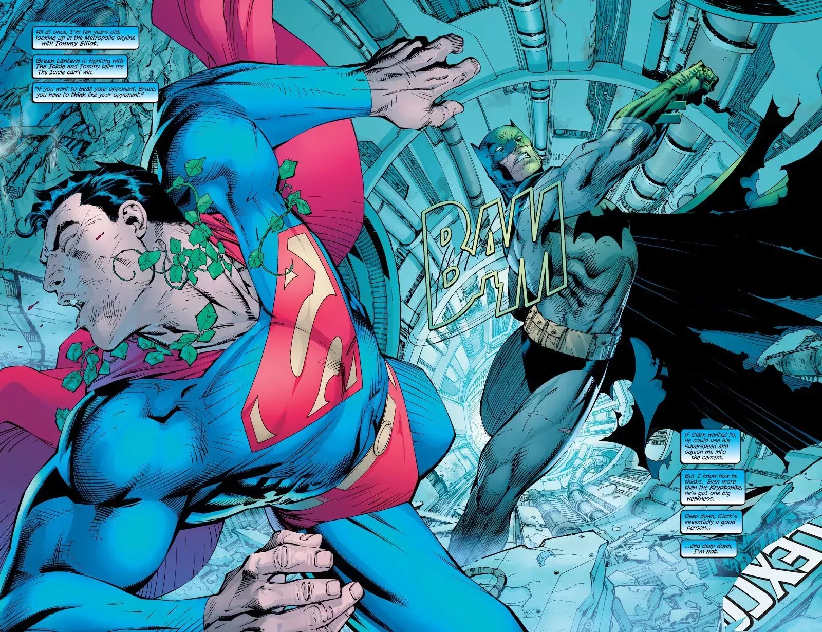 En muchos sentidos, la intención de Loeb era simplemente dar a Lee la mayor cantidad de cosas geniales para dibujar, y con ese fin, Loeb escribió la serie (en la que Batman es asediado por un misterioso nuevo villano llamado Hush) con un montón de eventos notables que tienen lugar, incluyendo a Batman y Catwoman reuniéndose y a Batman y Superman teniendo una batalla dramática (Superman estaba siendo controlado mentalmente por Poison Ivy). El Superman controlado mentalmente hace una entrada dramática...