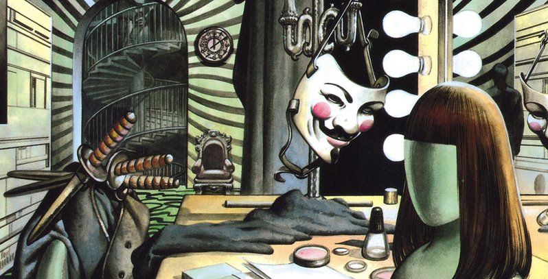 V de Vendetta es una historia de Alan Moore que ha recibido el mismo tratamiento y popularización que Watchmen. V de Vendetta no sólo es una historia que Moore comenzó a escribir en los años 80, sino que también ha sido adaptada a una película importante en 2006 con los actores Natalie Portman y Hugo Weaving.