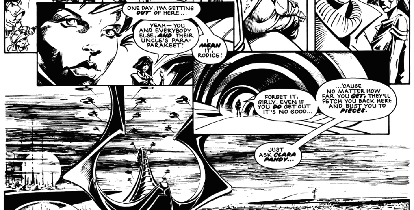 La Balada de Halo Jones es un famoso cómic que introdujo la primera protagonista femenina de la historia de la compañía de revistas de cómics, 2000 D.C. Halo Jones es un humano promedio con una vida promedio que cambia su destino a través de sus aventuras por toda la galaxia.