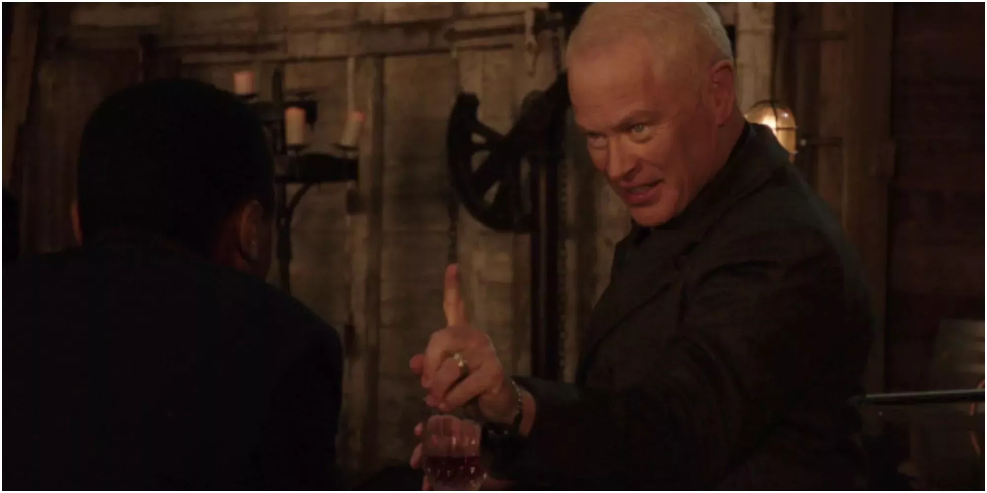 Mientras suena la canción homónima del episodio, Damien lucha contra los agentes con una mano mientras disfruta de una bebida con la otra. El hecho de que, incluso cuando Rip detiene el tiempo, nadie consiga ponerle un dedo encima a Darhk subraya lo poderoso que es realmente.