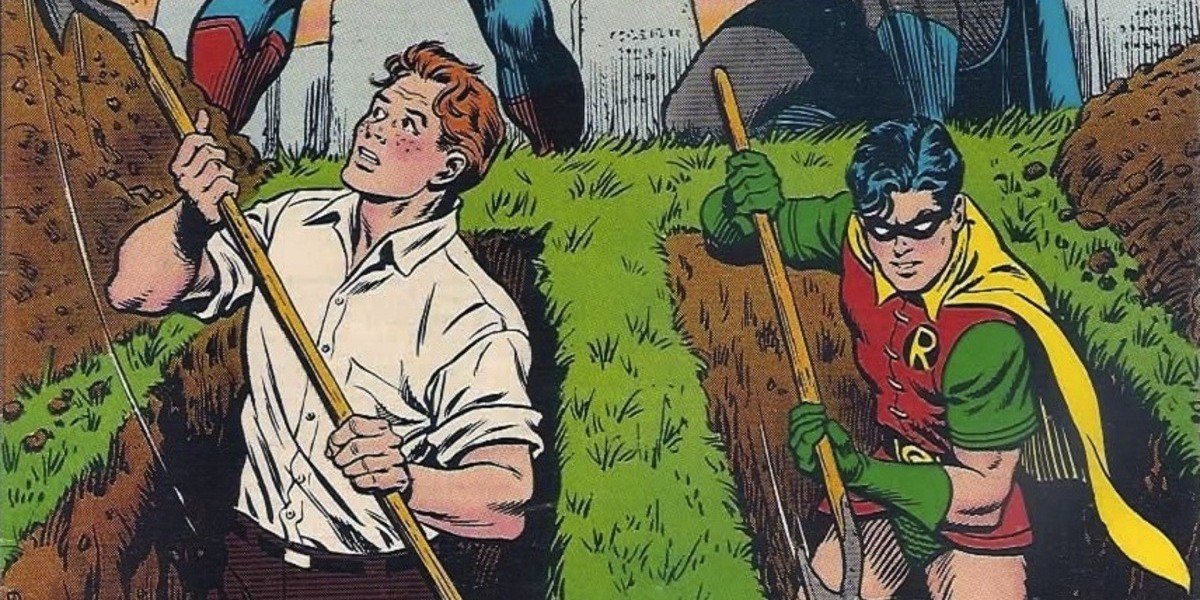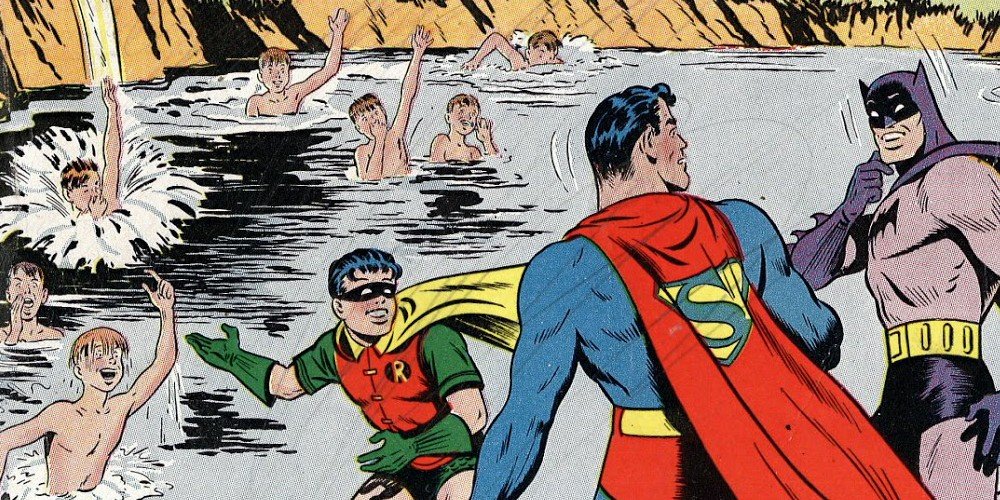 Por extraño que suene, es verdad. En otro incidente de cruce de límites, Batman y Superman son vistos colgados en un estanque donde nadan niños pre-púberes. Dick también es visto con ellos. Concedido que Dick es un niño, así que sería natural para él saltar al estanque con otros niños y hacer un día de esto.