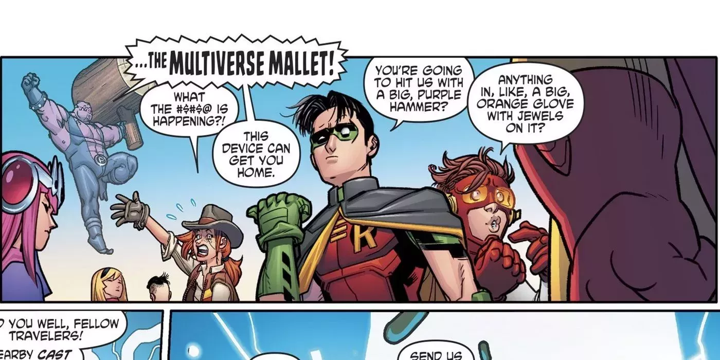 Mientras Tim Drake se preguntaba sobre la lógica de usar un martillo gigante para transportarse a través del multiverso, Bart tenía otra idea en mente. Sugirió al equipo del zoo que buscara un "guante grande y naranja con joyas", en referencia al Guantelete del Infinito de Thanos y a las Gemas del Infinito. Es un sutil recordatorio de que Bart siempre fue un fan de los cómics, aunque las gemas nunca parecían ser capaces de enviar a la gente a otros universos.