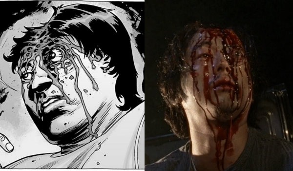 Los responsables de la serie de televisión se revelan como narradores taimados cuando descubrimos que algunas de las decisiones adoptadas en la anterior temporada pretendían conducirnos a este momento. ¿Por qué el personaje de Denise ocupaba el lugar que en los cómics le correspondía a Abraham? Porque este debía prevalecer vivo para servirnos como anzuelo. Cuando vemos que es él quien resulta escogido en la siniestra ruleta de Negan nos sentimos tanto aliviados como decepcionados; lo primero porque no es uno de los personajes principales quienes se han ganado nuestro cariño en estos siete años la víctima, lo segundo porque creemos que desde ‘The Walking Dead’ han sido unos cobardes, incapaces de dar muerte a un personaje querido como en el cómic original. Y, entonces, Daryl golpea a Negan; cuando ya nos habíamos librado de esa tensión por saber quién moriría, volvemos a sufrir. Creemos, por unos instantes, que sí podría ser el pequeño de los Dixon, que sí tendrán el valor, pero le devuelven al semicírculo y de inmediato sabemos lo que a suceder. Porque, en todo momento, mientras Negan pronuncia sus palabras, sobresale un personaje, la víctima del cómic de este momento dramático. Y lo golpea, de forma repentina, cuando todavía no lo habíamos asimilado.