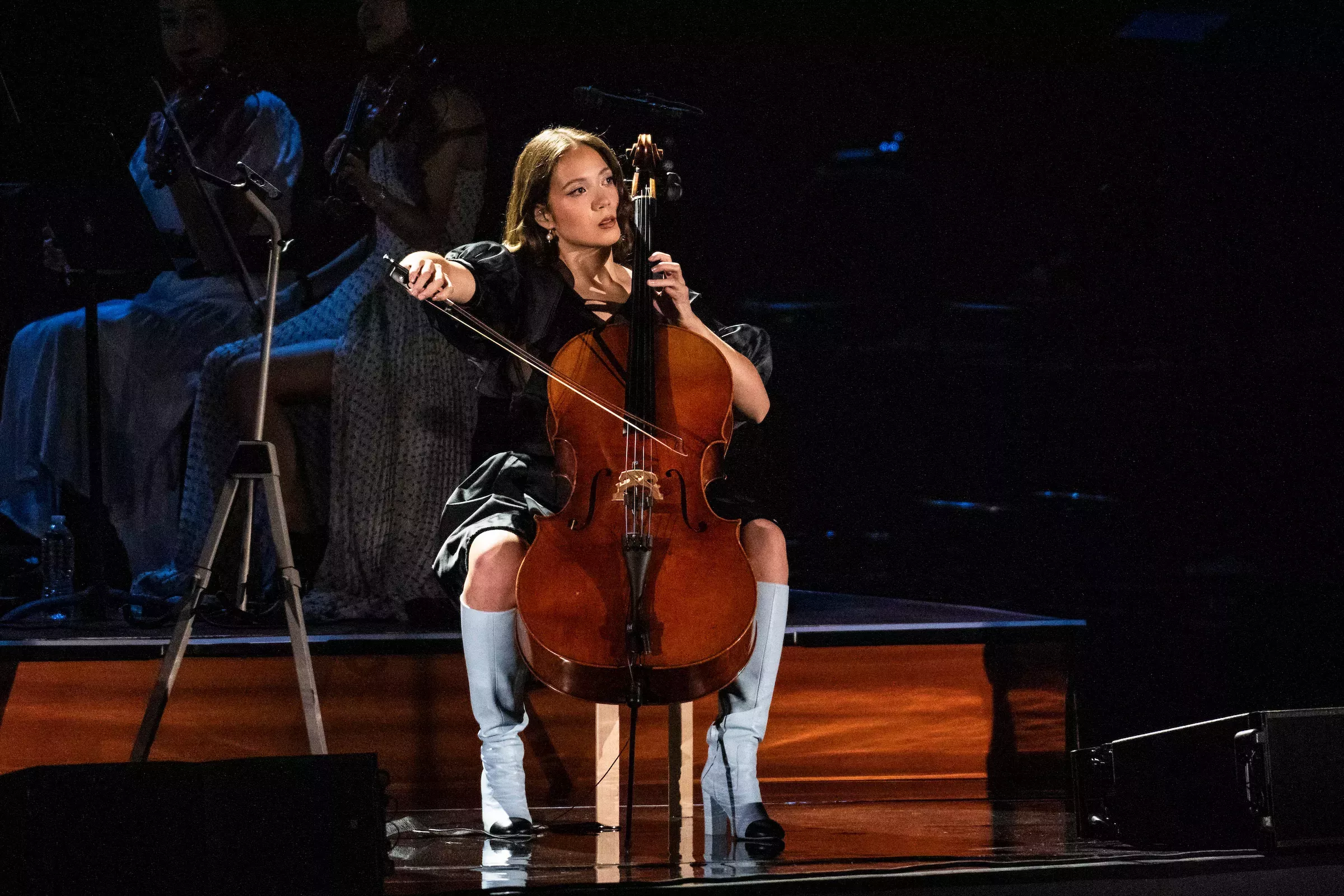 Lo más destacado fue cualquiera de los varios números que terminaron con Laufey moviéndose desde el centro del escenario a un asiento de espera en un violonchelo para una coda solista. Cuando se sentaba al piano, eso significaba que el público tenía muchas posibilidades de conseguir algo que se inclinara hacia su lado de formación clásica, como "Promise" y "California and Me" (sienta bien tener material que evoca el barroco pero también menciona Melrose Avenue). Cuando está tocando su guitarra eléctrica, eso a menudo significa que todo el mundo está a punto de conseguir algo con un ligero tinte de bossa nova - o una puñalada muy abierta en uno, como con el cierre "From the Start".