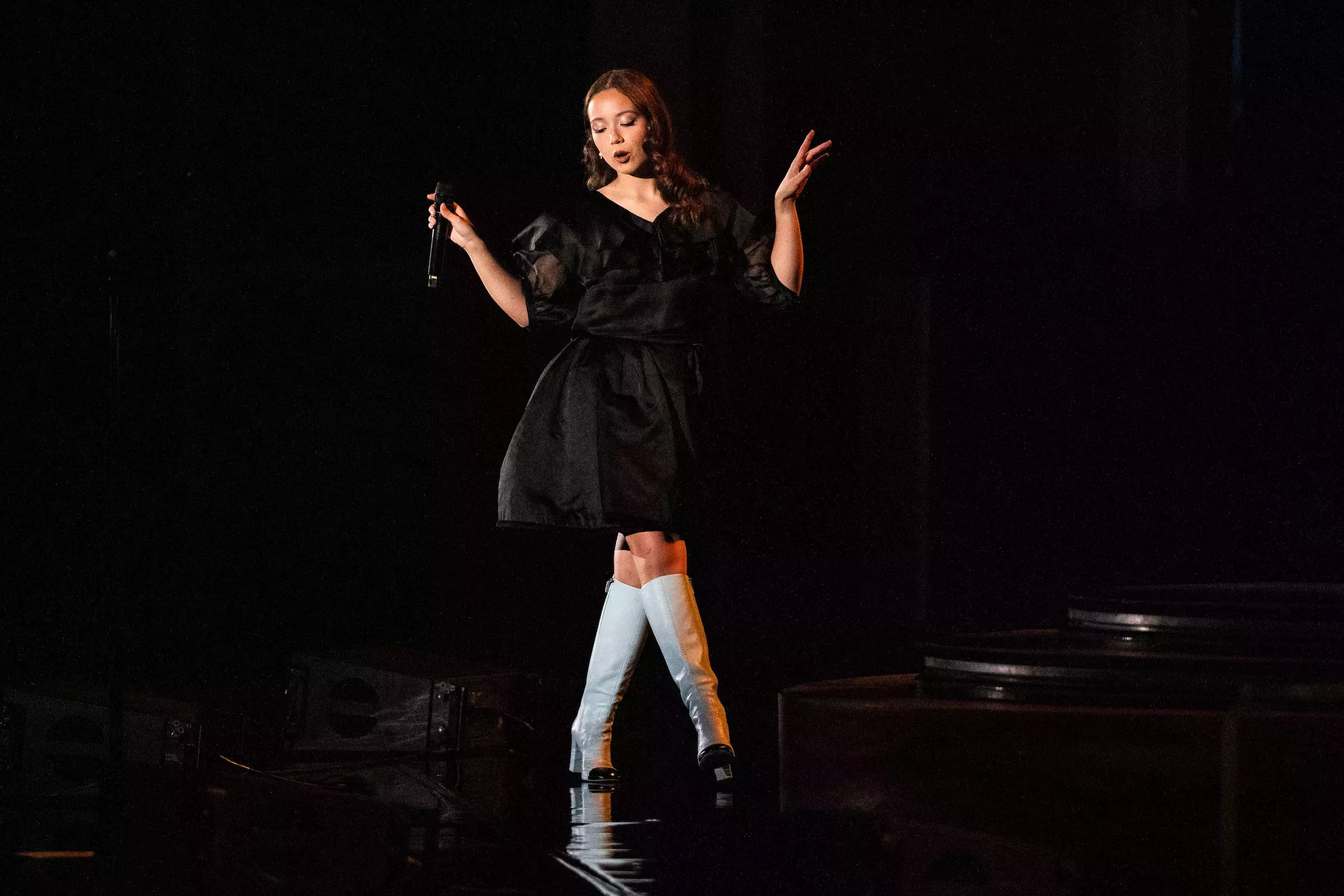 Laufey también sabe hacer canciones de amor correspondido, y ya tiene suficientes años a sus espaldas como para hablar de ellas desde la experiencia. En esa categoría entra "Valentine", una sorpresa amorosa que el público de la Bowl correspondió sosteniendo teléfonos encendidos tanto en rojo como en blanco, para regocijo de la cantante. Pero sus canciones sobre sentirse excluida del amor son tan buenas que cabe esperar que no hayan sido sólo una fase para ella. Una de las cosas maravillosas de Laufey es que algunas de sus melancólicas baladas parecen intemporales y sin demografía, mientras que otras -quizá la mayoría- tienen frases o referencias líricas que las vinculan a la sensibilidad de una veinteañera en la época actual. Es algo así como Frank suspirando por Ava, si se puede imaginar a Frank y Ava como estudiantes universitarios preocupados por la imposibilidad del amor entre la finalización de sus tesis.