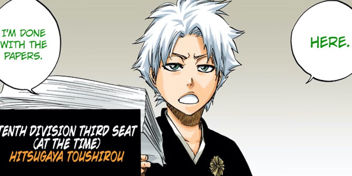 Toshiro Hitsugaya aparece como el tercer asiento de la División Diez, directamente debajo del vice-capitán Matsumoto. Es claramente el miembro más diligente del grupo, lo que no dice mucho considerando la alergia del Capitán Shiba al papeleo.