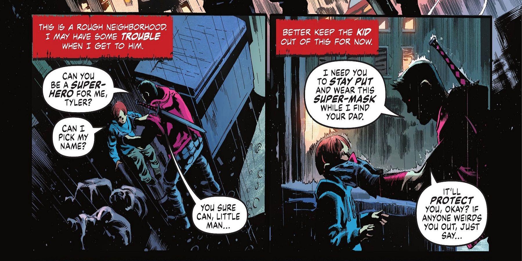 Es un caso normal hasta que Jason mata al padre de un niño y se ve obligado a buscarle un nuevo hogar. Por ahora, el chico en cuestión se junta con Jason Todd, el miembro más dañado de la familia de Batman, y se hace llamar "Capucha Azul". Es imposible que esta historia no acabe con el corazón roto.