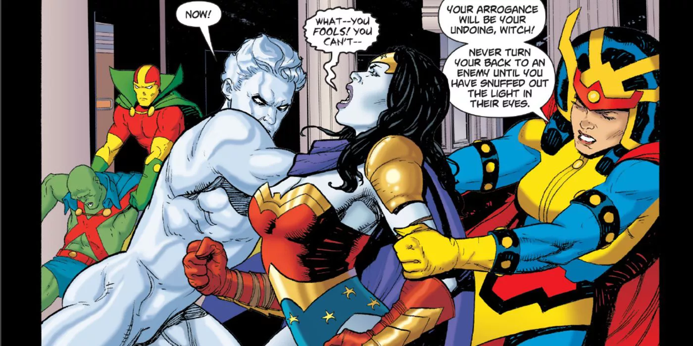 La Liga hizo todo lo posible para liberar a Diana de la influencia de Hécate, y pagó un precio muy alto. Hécate usó el poder de la Mujer Maravilla para matar a varios miembros de la JLI, incluyendo al Relámpago y a Superman. Sus acciones alimentaron el odio de Diana hacia Hécate, dando más poder a su opresor y haciendo caer a más miembros de la Liga.