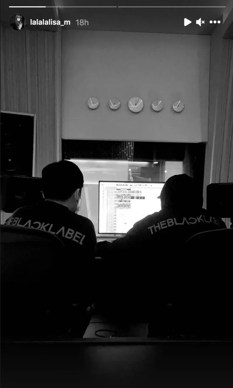 En la primera imagen, se ve a dos personas encorvadas sobre una pantalla de ordenador mientras trabajan en la música. Ambos llevan ropa de The Black Label, una filial de la agencia de Lisa, YG Entertainment, lo que sugiere que el nuevo tema podrÃa estar producido por alguien del sello.