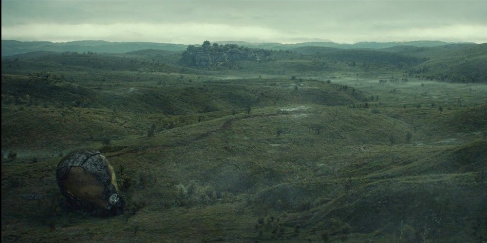 Una versión gigantesca de su casco está implantada en la Tierra, aparentemente dejada tras su horripilante muerte con energía cuántica al final de la película.