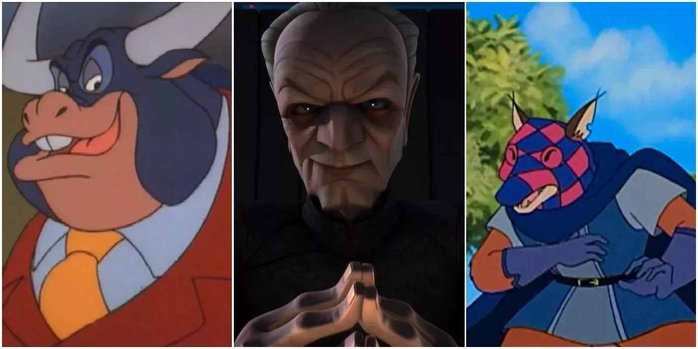Nadie interpreta a un malo como Tim Curry. Rezuma una mezcla inimitable de carisma y mala leche, lo que le ha llevado a una larga carrera de interpretaciones icónicas. En el cine, sus papeles más famosos son Frank-N-Furter en The Rocky Horror Picture Show, Pennywise en IT y Wadsworth el mayordomo en Clue. Sin embargo, su encantadora y siniestra voz le ha permitido tener también una larga carrera como actor de doblaje, con papeles como Taurus Bulba en Darkwing Duck (donde utiliza un acento ruso poco característico), Slagar The Cruel en Redwall, y Darth Sidious en Star War: The Clone Wars. La producción de Curry ha disminuido desde que sufrió un derrame cerebral en 2012; desde entonces se ha recuperado, y lo menos que se puede hacer es desearle lo mejor después de toda una vida entreteniéndonos.