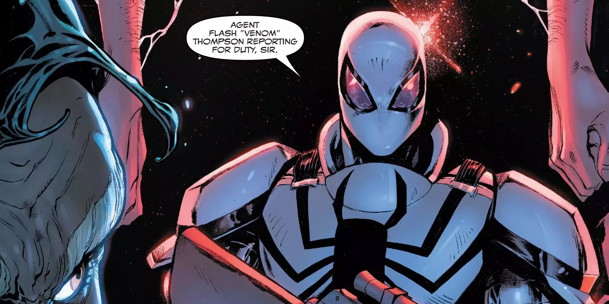 Thompson fue un gran héroe, pero perdió la vida luchando contra el Duende Rojo. Resucitado durante el ataque de Knull a la Tierra, volvió a recibir el simbionte Anti-Veneno y retomó su antiguo trabajo, uniéndose a los Vengadores Salvajes. Él y Spiderman formaban un gran equipo cuando luchaban codo con codo, algo que les habrÃa sorprendido de adolescentes.