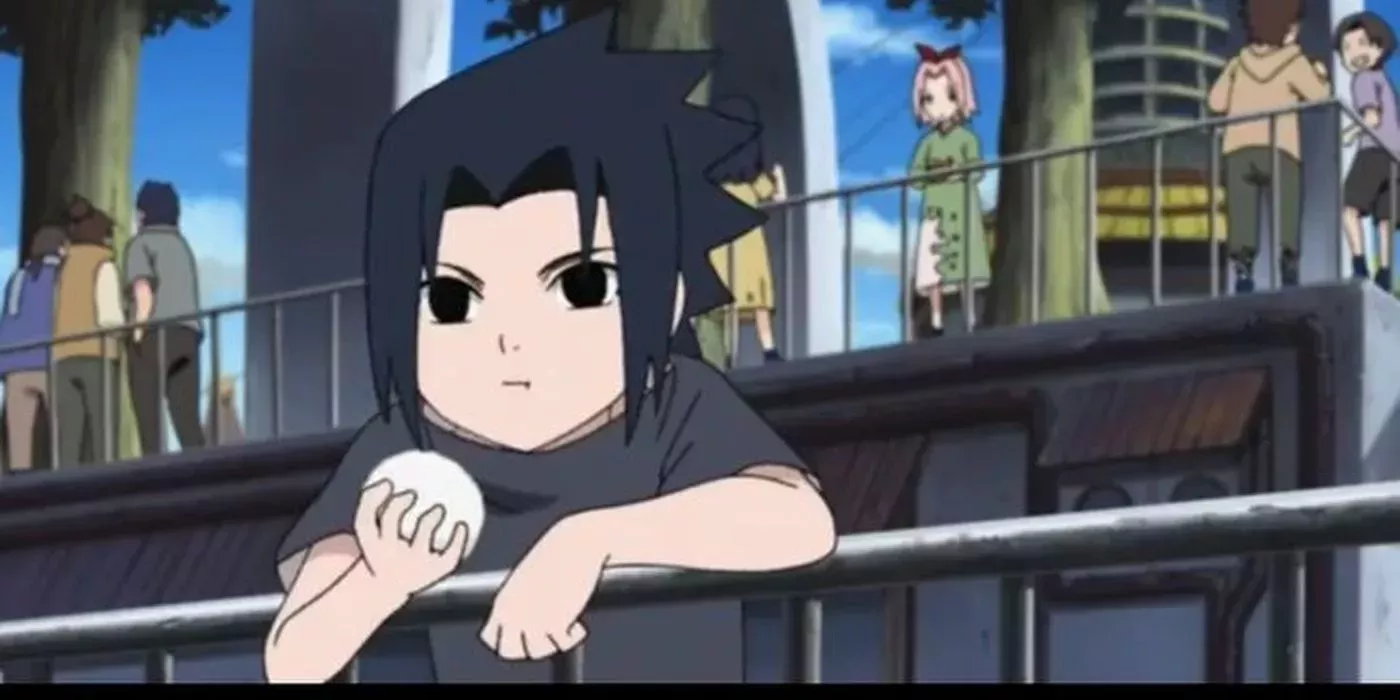 Los onigiri son bolas de arroz japonesas, que aparecen en un par de escenas de Naruto. Uno de esos momentos tiene lugar cuando Sakura y Sasuke son niños. Sakura mira a Sasuke desde lejos, observando cómo se come su Onigiri. El Onigiri de Sasuke parece sencillo, no tiene nada más que arroz.
