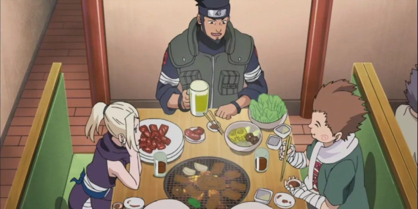 Como Choji no entrena lo suficiente, Asuma tiene que sobornarlo con Yakiniku para motivarlo a trabajar más duro. Asuma sabe lo mucho que le gusta a Choji comer carne, asà que animarle con Yakiniku es una obviedad. Choji y el Equipo 10 suelen salir a comer Yakiniku juntos y lo aprovechan para estrechar lazos. Aunque Asuma, Ino y Shikamaru no comen tanto como Choji, deciden acompañarlo. Otras escenas muestran a Choji comiendo Yakiniku con otros personajes como Naruto.