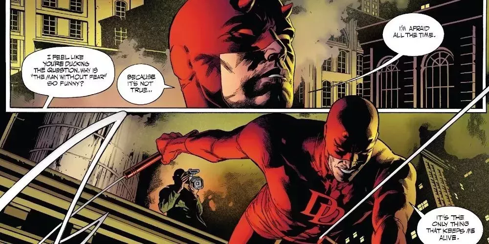 En Marvel Comics #1000,Daredevil habla de que algunos de los nombres que le han puesto no son correctos. Los temerarios son apodos para las personas que saltan antes de mirar. Sin embargo, Matt analiza su entorno antes de hacer su movimiento. Un transeúnte le pregunta qué le parece el nombre de "El hombre sin miedo" y Matt le dice que es gracioso porque no es cierto. En realidad, tiene miedo todo el tiempo, y eso es lo que le convierte en un héroe tan eficaz.