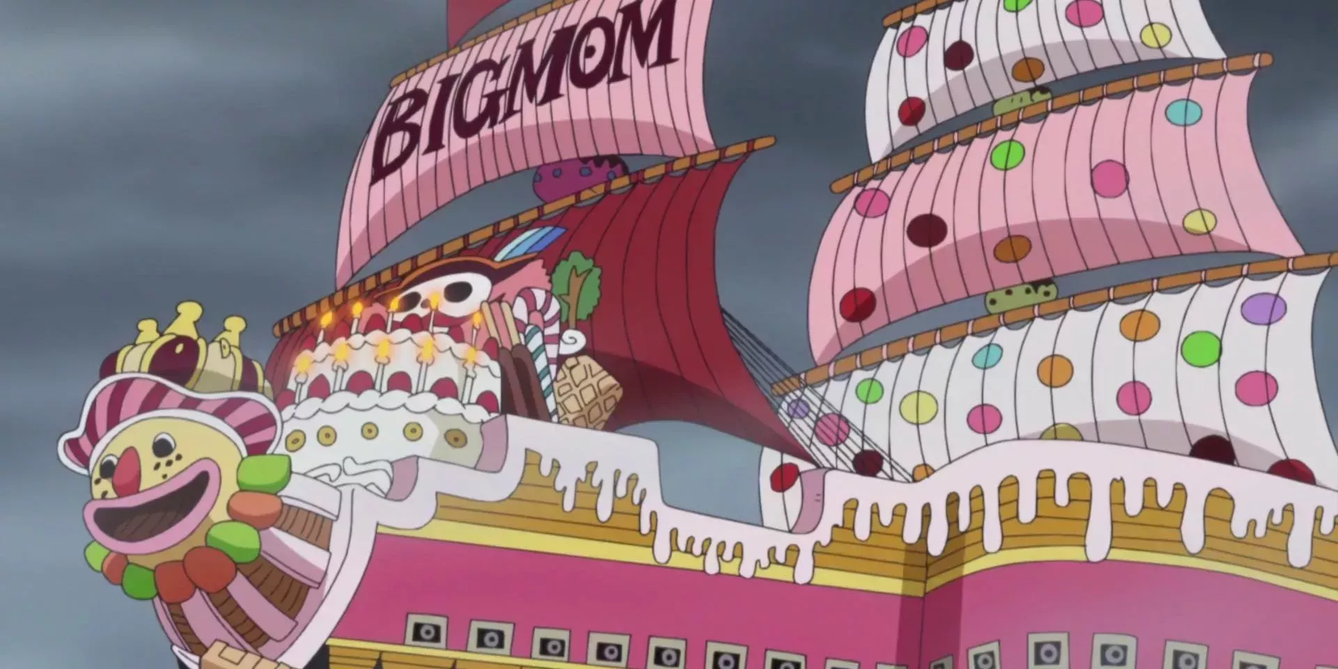 Con 637,5 metros, el Queen Mama Chanter es el segundo barco pirata más grande conocido en la serie. Como se esperaba de la Gran Flota de Totto Land, el buque insignia se erige enorme para liderar a los Piratas de la Gran Madre y a la Familia Charlotte en la batalla.