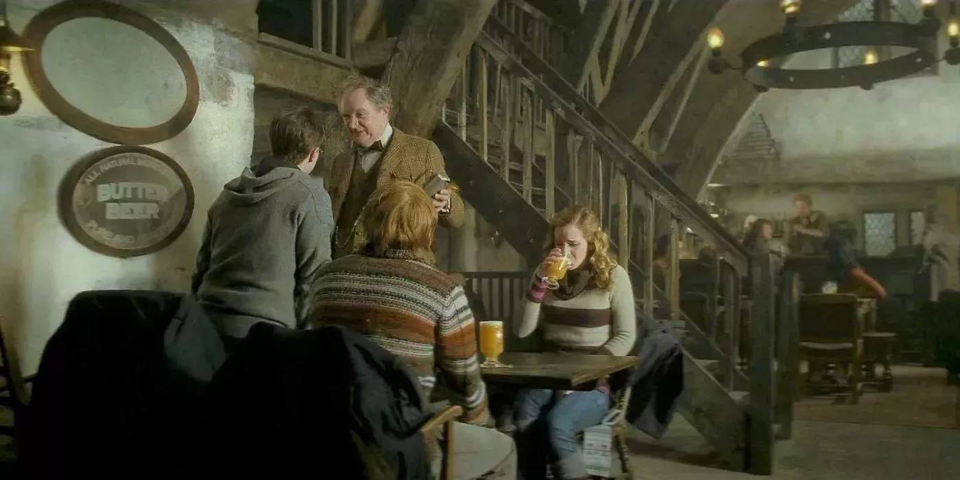 En los libros y pelÃculas de Harry Potter aparecÃa mucho la cerveza de mantequilla, una deliciosa y espumosa bebida con sabor a caramelo. Sin embargo, su escaso contenido de alcohol era tan bajo que su consumo era seguro para los jóvenes estudiantes. Las Tres Escobas, el Caldero Chorreante y la Posada de la Cabeza del Cerdo eran algunos de los locales que vendÃan la famosa bebida.