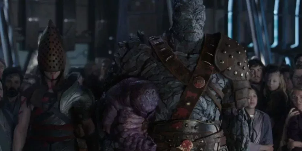 Todos coinciden en que Korg es uno de los mejores momentos de Thor: Ragnarok, pero hay un momento y un lugar para todo, especialmente para el humor. Aunque se disculpe de verdad cuando Asgard explota, la película lo interpreta como una gran broma, a pesar de que muchos asgardianos acababan de perder su hogar.