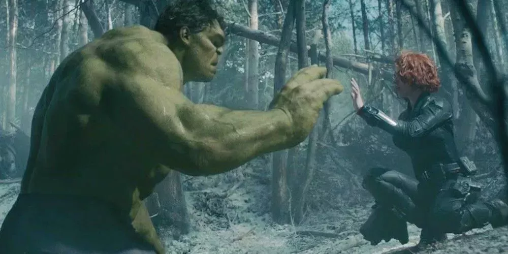 Cerca del final de la batalla inicial de Vengadores: La era de Ultrón, Natasha intenta ayudar a Hulk a volver a ser Bruce Banner. Sintiendo que ya no están en la lucha, Stark les tiende la mano con una broma sexual que resulta de mal gusto, incluso para él.
