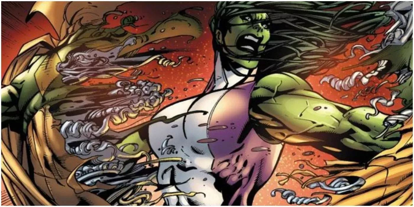 La muerte de Ant-Man (Scott Lang) dejó a su hija y a sus compañeros Vengadores desconsolados, pero para colmo, She-Hulk canalizó su ira gamma interior y destrozó a Visión después de que este atacara el Quinjet, dejando a algunos de sus compañeros Vengadores heridos en daños colaterales. Resulta que Bruja Escarlata estaba detrás de los ataques, pero el daño ya estaba hecho y She-Hulk no podía vivir con lo que había hecho.
