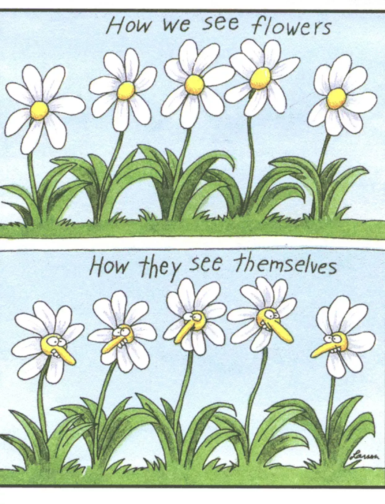 La gente tiende a ser muy autocrítica y rara vez ve en sí misma la belleza que ven los demás. Imaginar que una flor se ve a sí misma torpe y extraña, incluso rara o fea, parece absurdo, y quizá lo sea. Sin embargo, reflexionando, no es más absurdo que un ser humano que se ve a sí mismo a través de esa lente crítica que le dificulta ver su propia belleza.