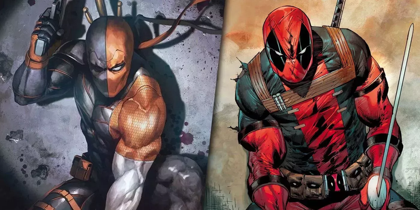Deathstroke de DC es un mercenario magistral. Un villano llamado Slade Wilson, Deathstroke tiene habilidades físicas mejoradas de supersoldado, espadas y una máscara completa con dos colores en duelo. Por su parte, Deadpool, de Marvel, es un mercenario llamado Wade Wilson con un factor curativo que obtuvo de un programa de supersoldados, espadas y una máscara de dos colores.