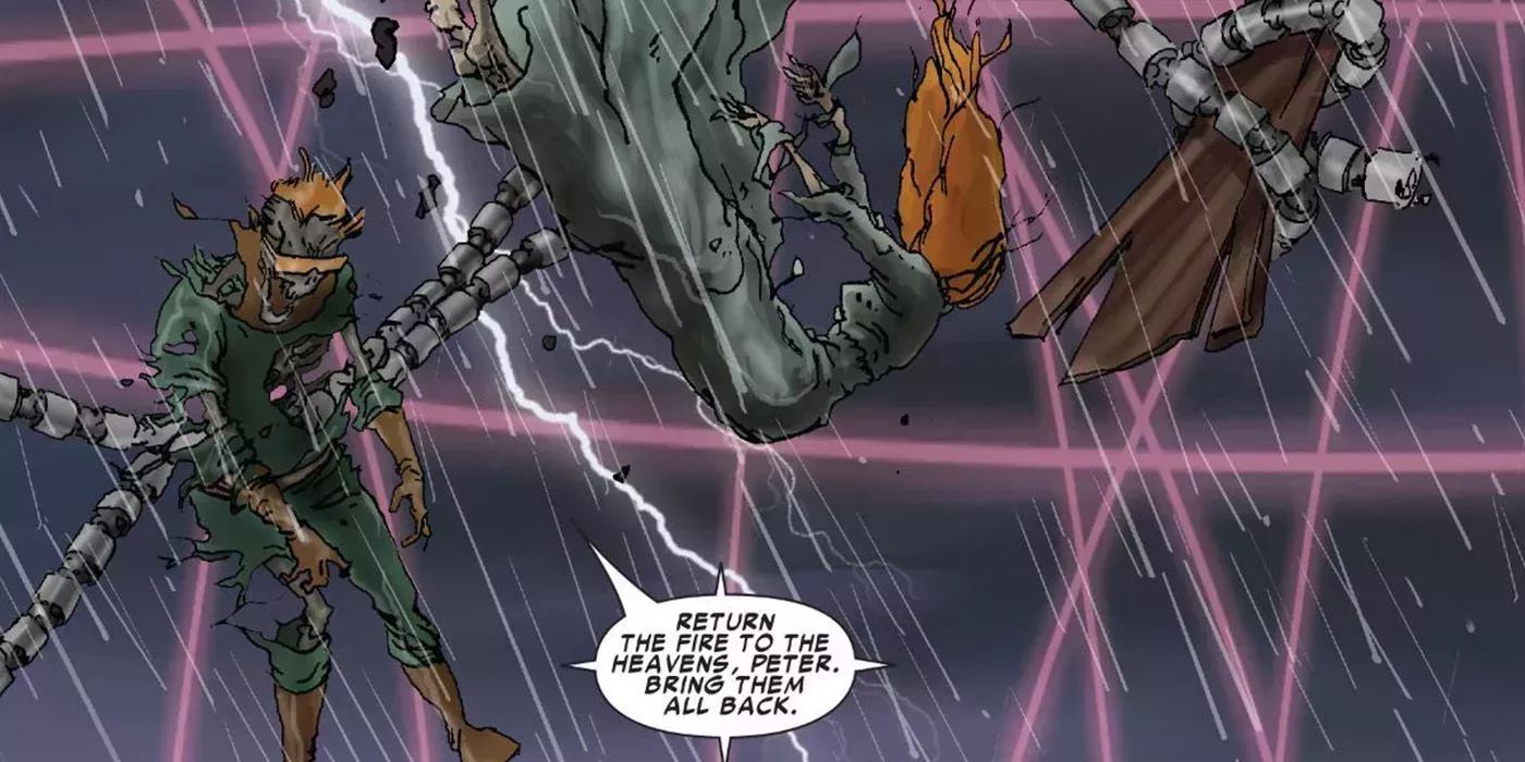 9/10 Los tentáculos de Doc Ock salvan a Spiderman de los Seis Pecadores