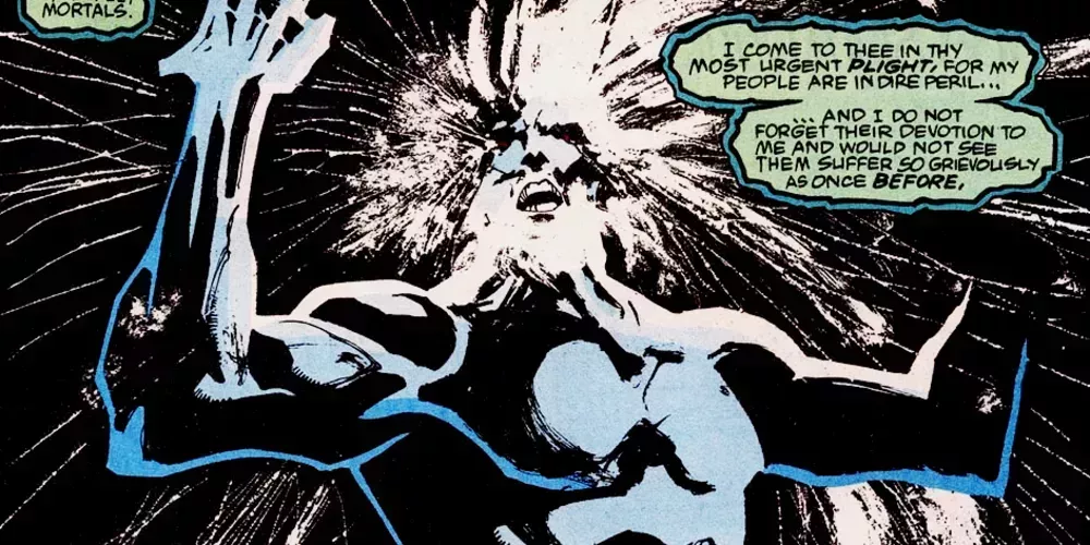 Al luchar contra el villano Suma-Ket, Namor es empalado con una enorme espada. Los compañeros de Namor sólo se ven obligados a llorar por él durante dos páginas completas antes de que Neptuno aparezca de la nada y devuelva a Namor a la vida, dándole una elegante armadura nueva. Nadie quiere que el héroe de una historia muera, pero parece un poco barato que Namor vuelva a la vida después de haber estado muerto sólo durante unos pocos paneles.