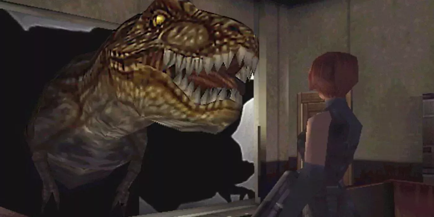 Quizás el juego de dinosaurios más aterrador jamás creado, Dino Crisis, pone a los jugadores a navegar por una instalación remota infestada de dinosaurios, al estilo de Resident Evil. En uno de los encuentros más espectaculares y aterradores del juego, la protagonista, Regina, se dedica tranquilamente a sus asuntos cuando un T-rex atraviesa la ventana. La criatura engulle un cadáver y comienza a aterrorizar a Regina con su penetrante rugido, sus afilados dientes y sus amenazadores ojos amarillos. Puede que resulte difÃcil imaginar cómo un dinosaurio de tan baja resolución puede dar tanto miedo, pero en su momento supuso un susto como pocos.
