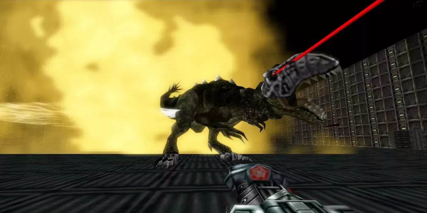 3 Thunder es un dinosaurio cibernético que puede disparar rayos láser (Turok: Dinosaur Hunter)