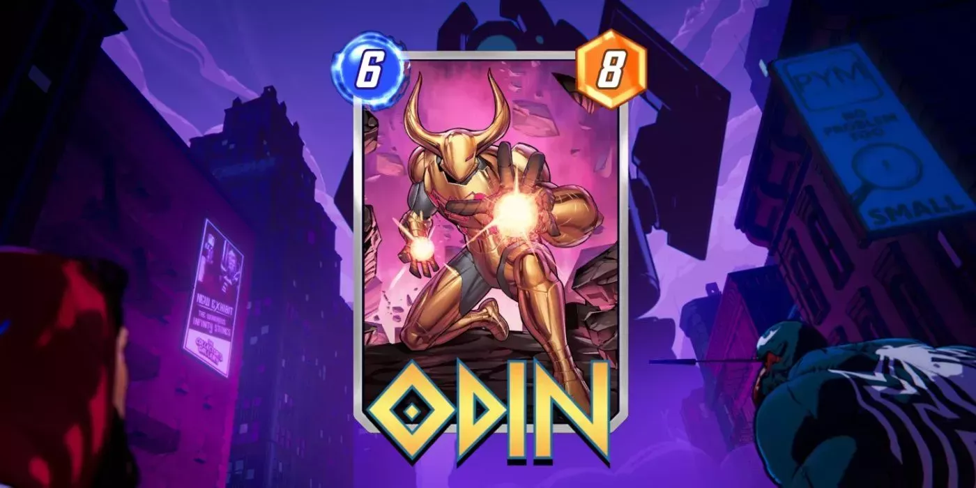 Odín es una carta de 6 costes que activa las habilidades de Revelación de los que ya están en posición en el lugar elegido. Siempre ha sido una carta formidable para el turno final, así que es natural que reciba algunos diseños de variantes épicas.