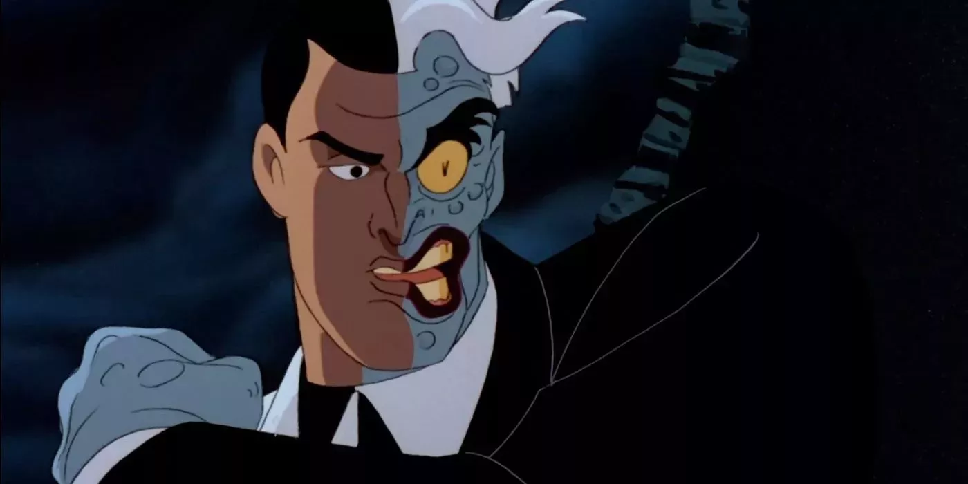 Thorne utiliza esa información para intentar chantajear a Harvey. Cuando Batman aparece, se produce una pelea y Harvey queda atrapado en una explosión química. Con cicatrices en un lado del cuerpo, la desfiguración y la tensión psicológica crean el nuevo personaje de Harvey, Dos Caras. Cuando Dos Caras inicia una ola de crímenes, Batman intenta salvar a su amigo, pero al final tiene que acabar con él. Aunque el episodio simplifica en exceso un complicado problema de salud mental, la caída en desgracia de Harvey sigue siendo una tragedia desgarradora.