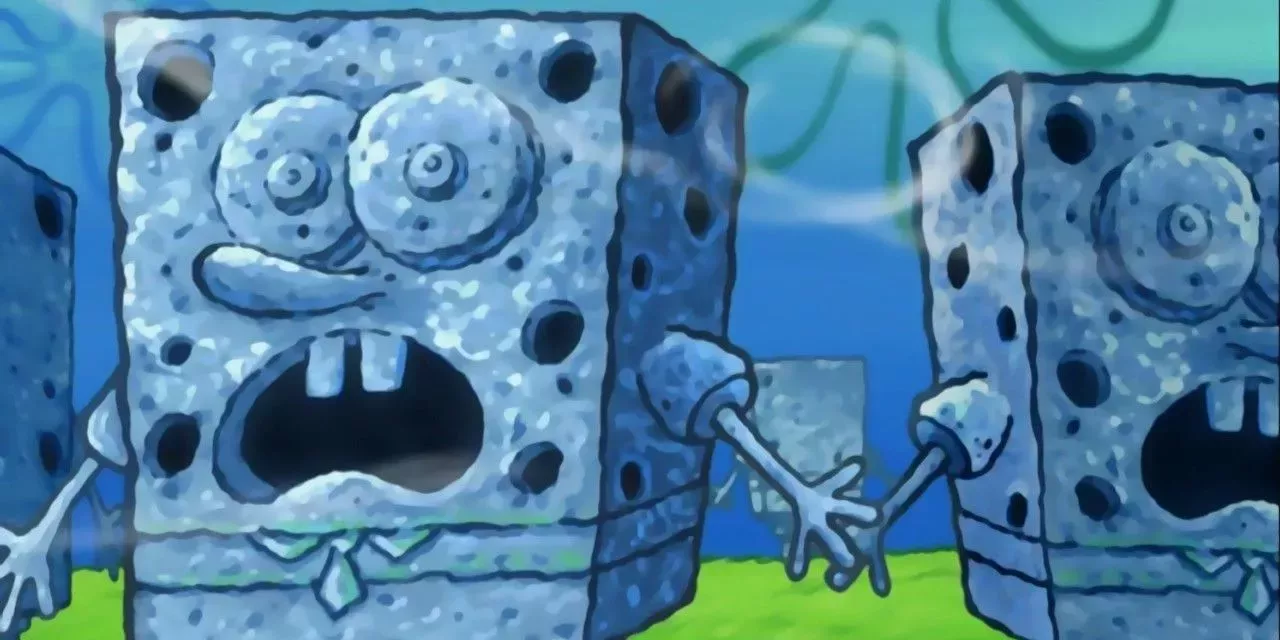Para protegerse de las medusas, Bob Esponja construyó enormes monumentos rocosos de sí mismo, sólo para descubrir que el tiempo había pasado y no quedaba nada de su antigua vida. Había una extraña sensación de aislamiento y distopía en "Spongehenge" que inquietaba a los fans.