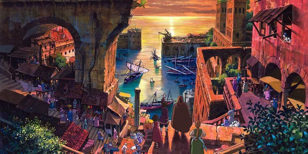 El Estudio Ghibli domina los escenarios de casas de campo llenas de flores, pero no se detiene ahí. El equipo de Ghibli crea mundos a través de la tierra, el mar y el cielo, llenos de caprichos y paletas de colores impresionantes. Algunos escenarios están llenos de movimiento y detalles esotéricos, mientras que otros dejan que el lavado de ricos tonos hable por sí mismo. Cada escenario parece una tierra en la que el público podría levantarse de sus asientos y entrar directamente.